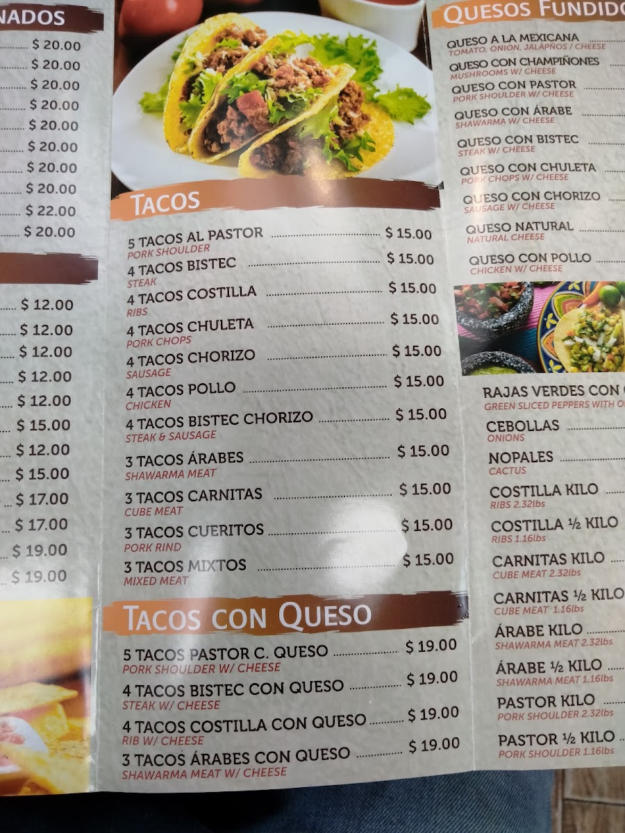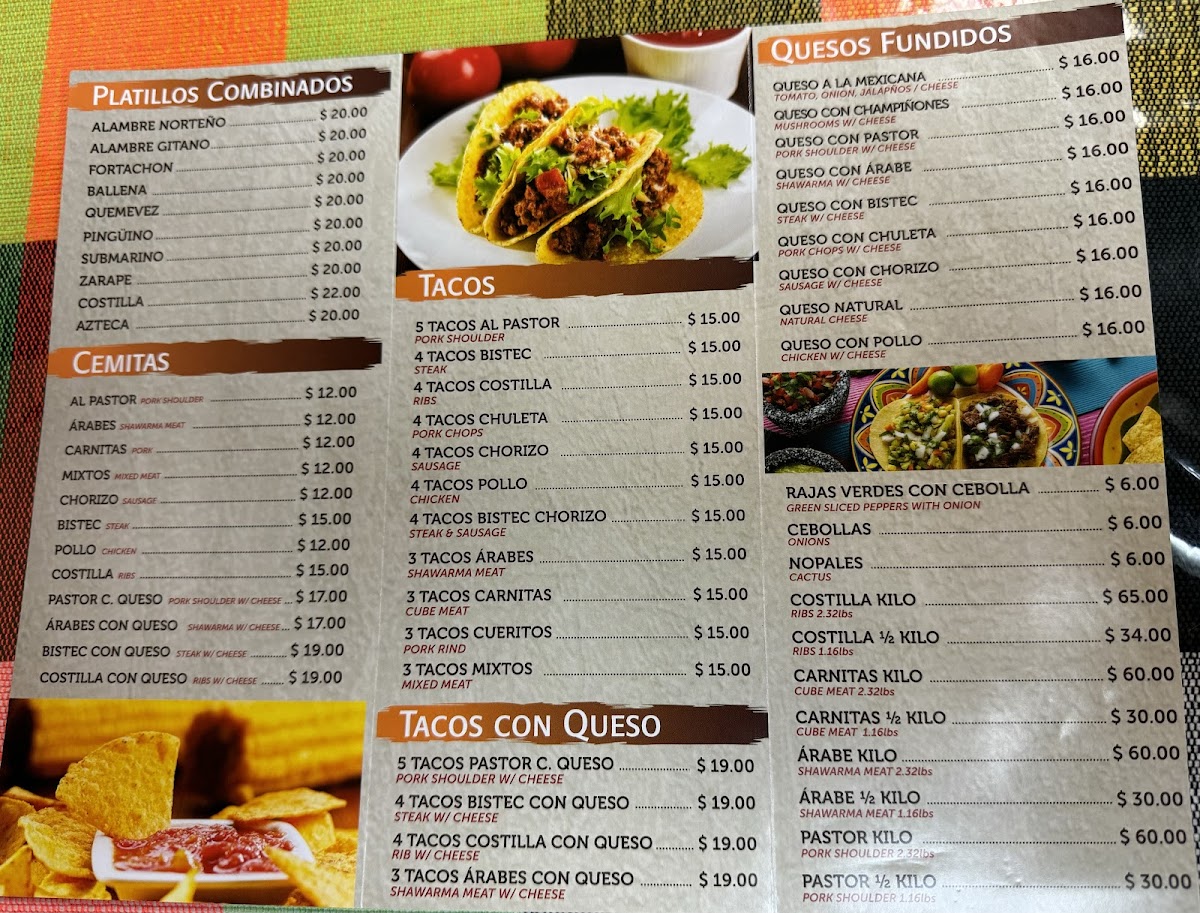 Guests typically enjoy hearty tacos like Al Pastor and Costilla during lunch or dinner, whether dining in or taking food to go. The menu also includes satisfying options such as Alambres, Quesadillas, and flavorful Mexican steaks, all paired naturally with classic Mexican sodas or a cold beer like Modelo or Corona.