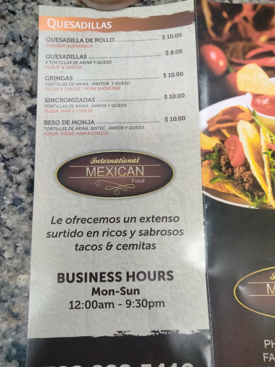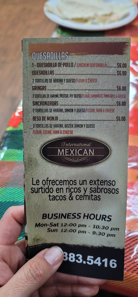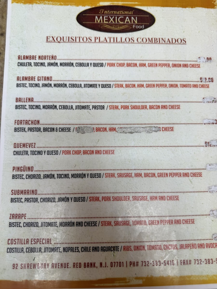 The menu at International Mexican Food embraces a straightforward, casual approach, perfect for those seeking authentic Mexican flavors in a relaxed setting. It features a selection of traditional dishes focused on vibrant tastes and simple presentations, reflecting the comforting, no-frills atmosphere of this Red Bank favorite.